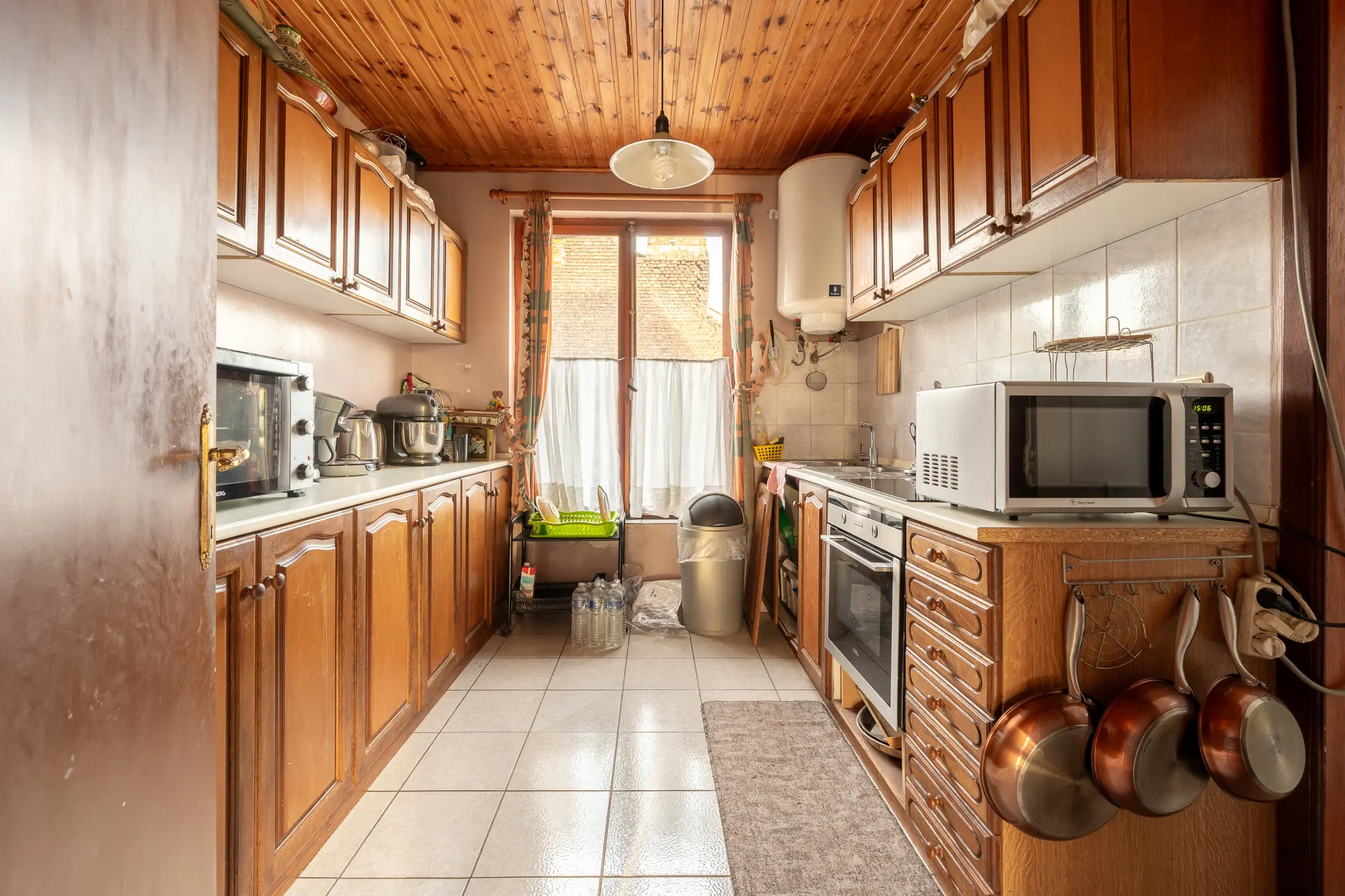 Au 2ème étage : un appartement de +/- 90m2 composé d’un salon, une cuisine, une salle à manger une chambre.
