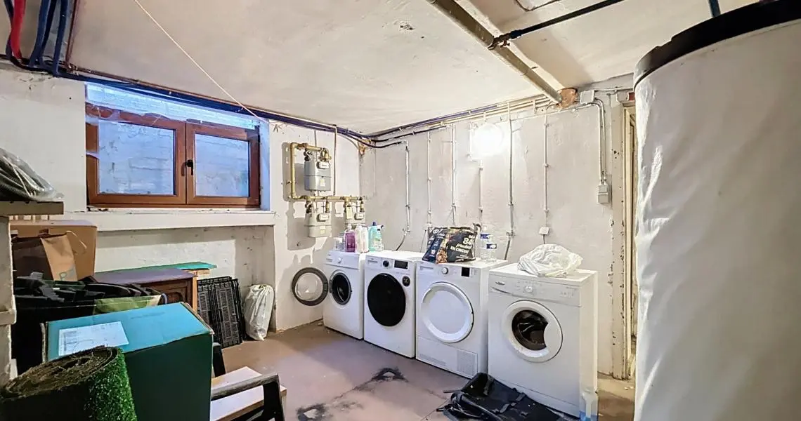 Le sous-sol propose une cave saine d’environ 40 m² composée de deux grands espaces, ainsi que deux autres espaces de rangement.