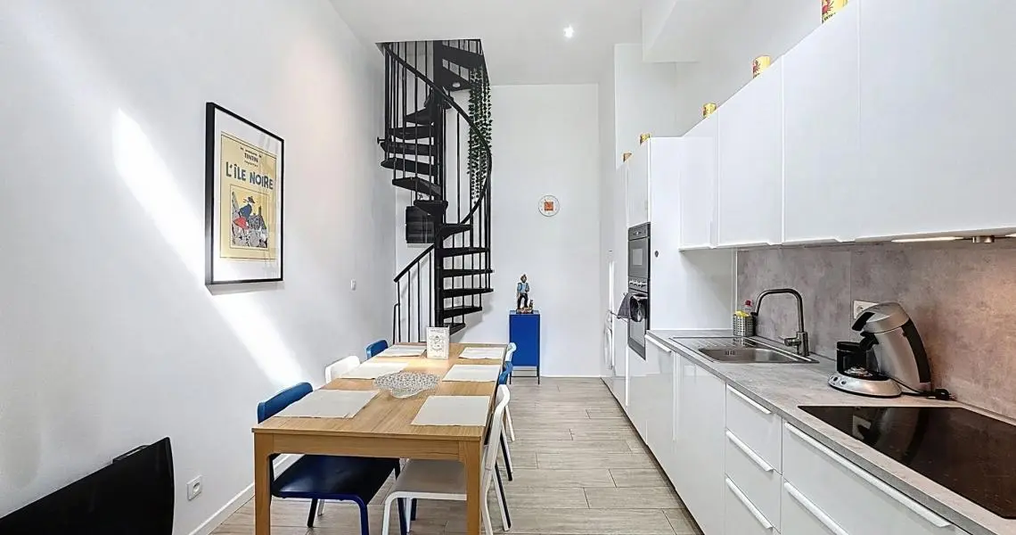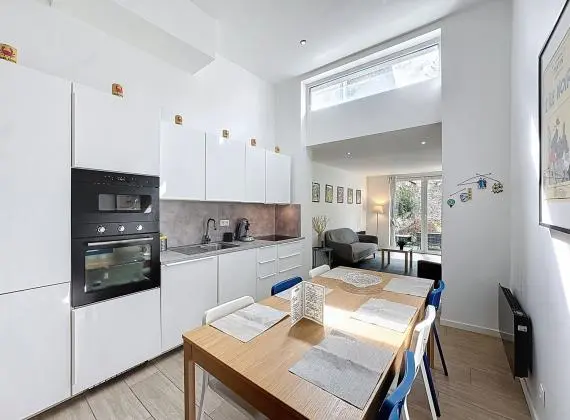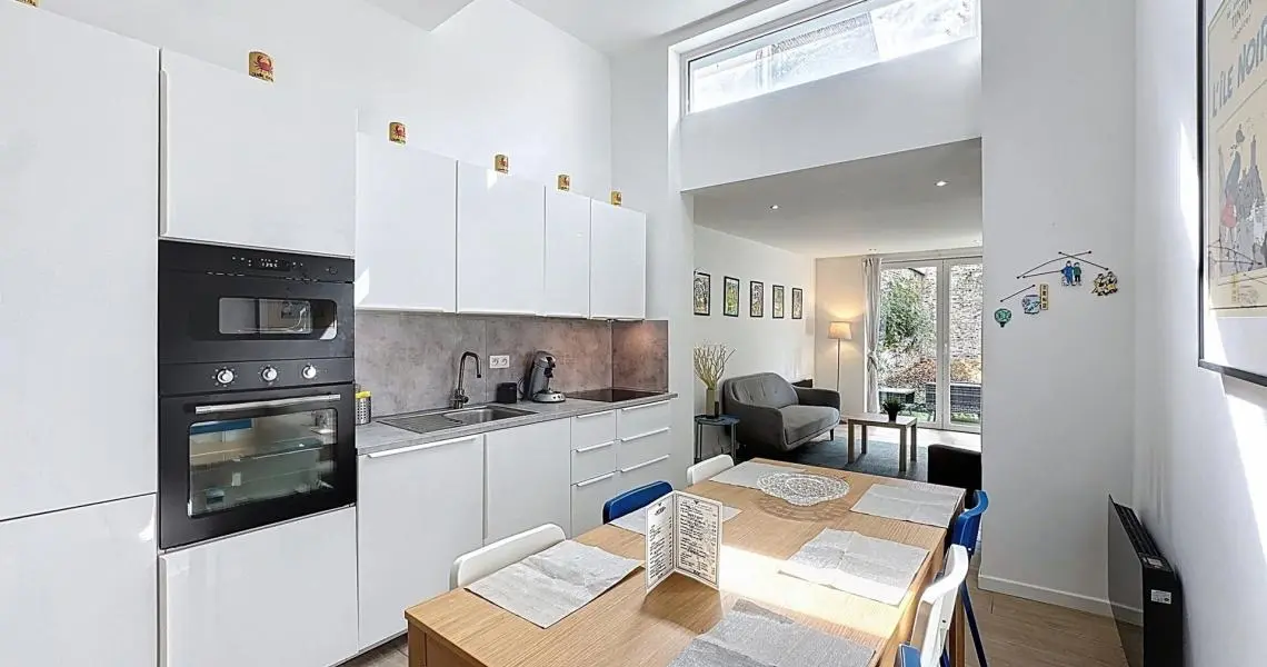 • Un appartement 3 chambres en duplex (rez + 1er), loué meublé en courte durée, avec terrasse et jardin orientés sud-ouest (± 90 m²).