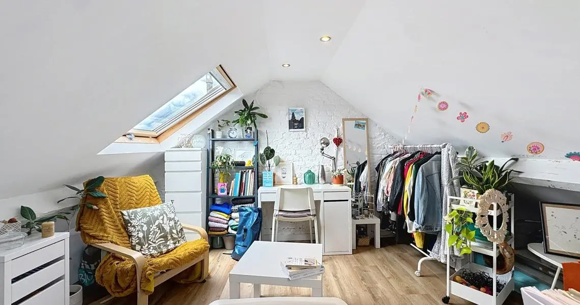 • Un triplex 4 chambres, dont une suite avec salle de douche, loué en colocation (± 120 m²).