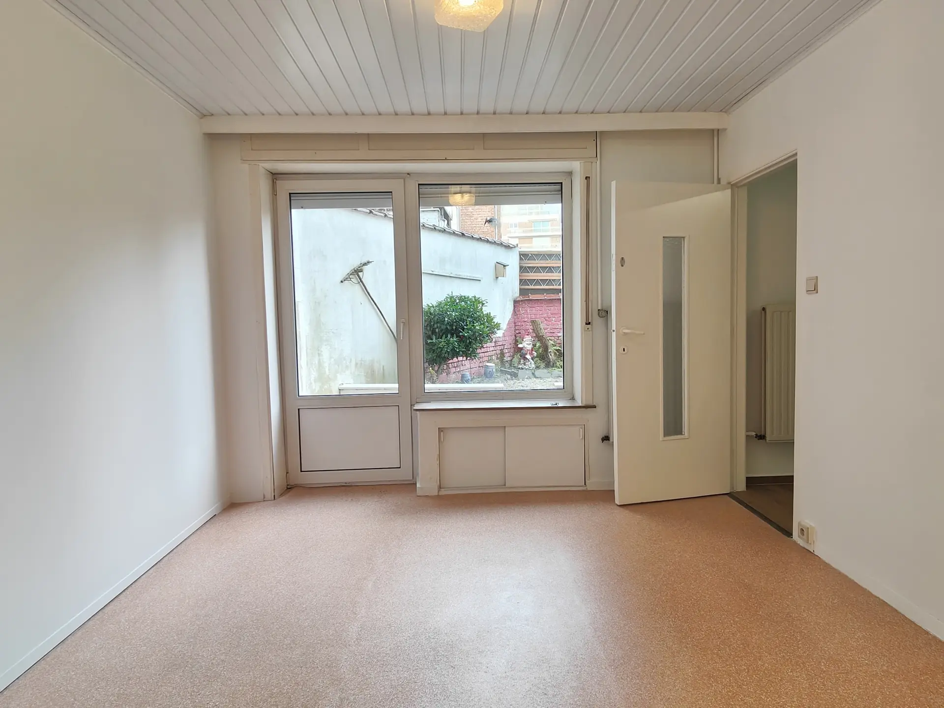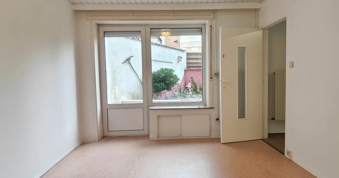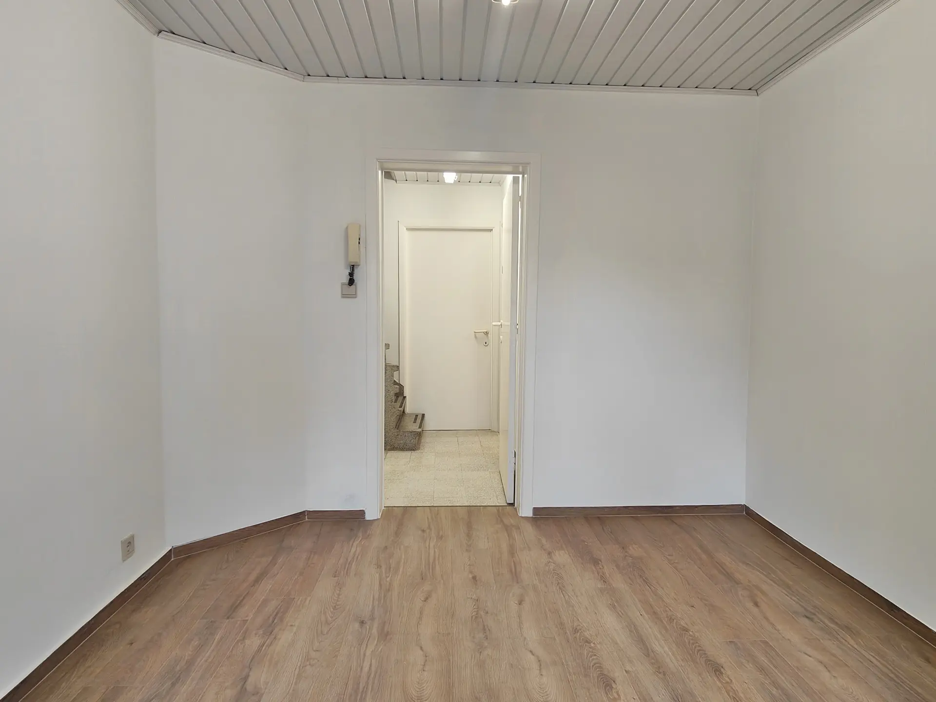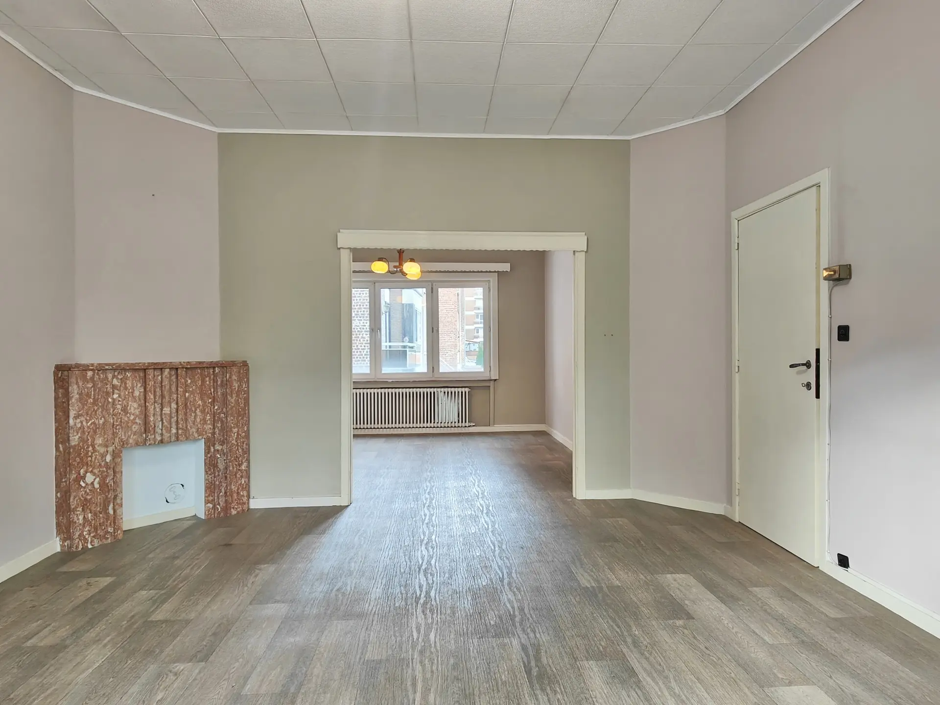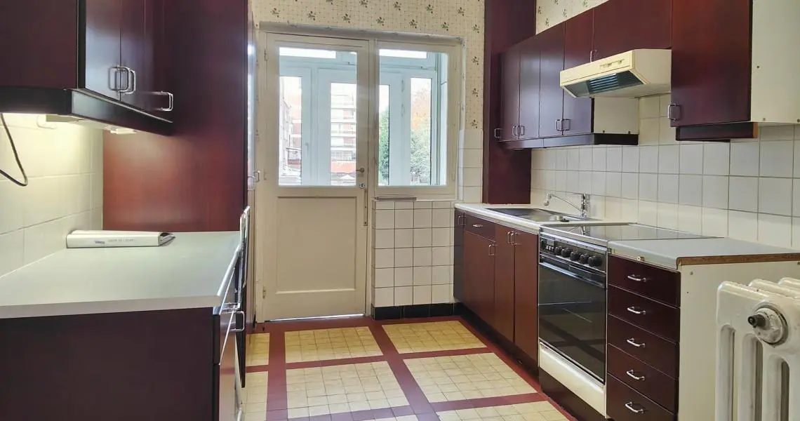 Le souplex de +/- 98 m² (selon PEB) offre au rez-de-chaussée un salon lumineux, une salle à manger et une cuisine ouvrant sur une terrasse.