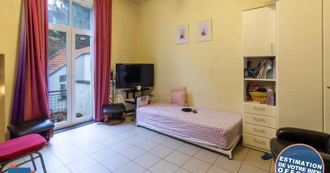 A proximité immédiate des institutions européennes, MYIMMO Etterbeek vous propose cet immeuble de rapport de 5 appartements entièrement en ordre urbanistique. Il a été entièrement rénové avec permis en 2000. Il se compose comme suit : A l'entresol se trouve un bureau de +/- 65 m² aménagé en appartement avec 2 chambres, séjour, salle de bains et cuisine. Au bel étage se trouve un appartement 1 chambre de +/- 55 m² avec un accès sur la cour de +/- 40 m². Au 1er étage est situé un appartement 1 chambre de +/- 52 m² jouissant d'une terrasse de +/- 10 m². Au 2ème étage se trouve un appartement 1 chambre de +/- 42 m². Au 3ème et dernier étage se trouve un duplex 1 chambre de +/- 52 m². Bonne rentabilité (+/- 4.6% nette), immeuble bien entretenu, chaudières récentes, toitures isolées, à visiter sans tarder. Plus de biens sur www.myimmo.be