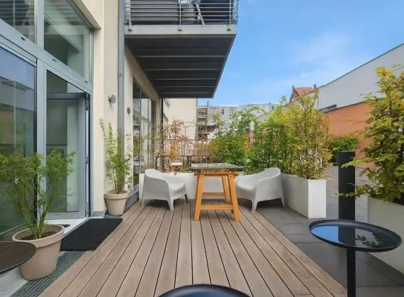MYIMMO a le plaisir de vous proposer ce magnifique loft contemporain de 3 chambres, superbement décoré et doté d’une terrasse idéalement orientée, localisé dans un quartier recherché. Appartement situé au rez-de-chaussée...