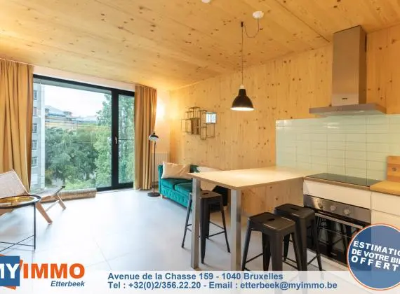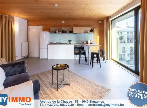 Grand Serment - Quartier Dansaert - MYIMMO Etterbeek vous propose 1 superbe appartement MEUBLE de +/- 70m² complètement neuf, construit avec des matériaux de qualités, dans le premier immeuble zéro carbone de Belgique...