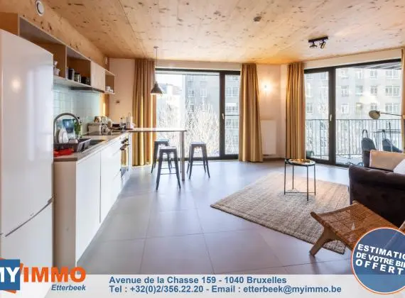 Grand Serment - Quartier Dansaert - MYIMMO Etterbeek vous propose 1 superbe appartement MEUBLE de +/- 80m² complètement neuf, construit avec des matériaux de qualités, dans le premier immeuble zéro carbone de Belgique...