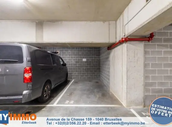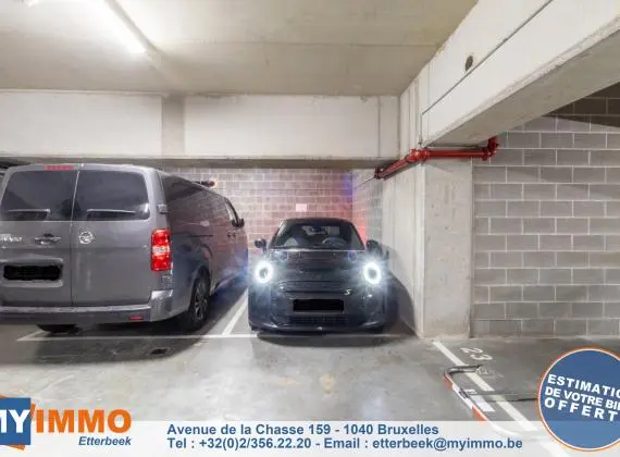 Invalides - MYIMMO Etterbeek vous propose en exclusivité une place de parking intérieur au sous-sols d'un petit immeuble à appartements. La porte d'entrée est automatique et s'ouvre via une télécommande. Les dimensions...
