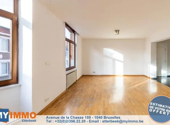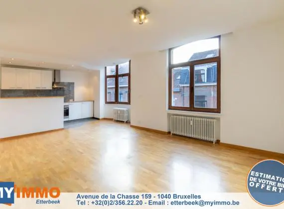 Idéalement situé dans une rue calme à sens unique entre la chasse et la place Saint-Pierre, MYIMMO Etterbeek vous propose ce joli appartement 2 chambres de +/- 80m² comprenant un lumineux séjour de +/- 30 m² qui donne...