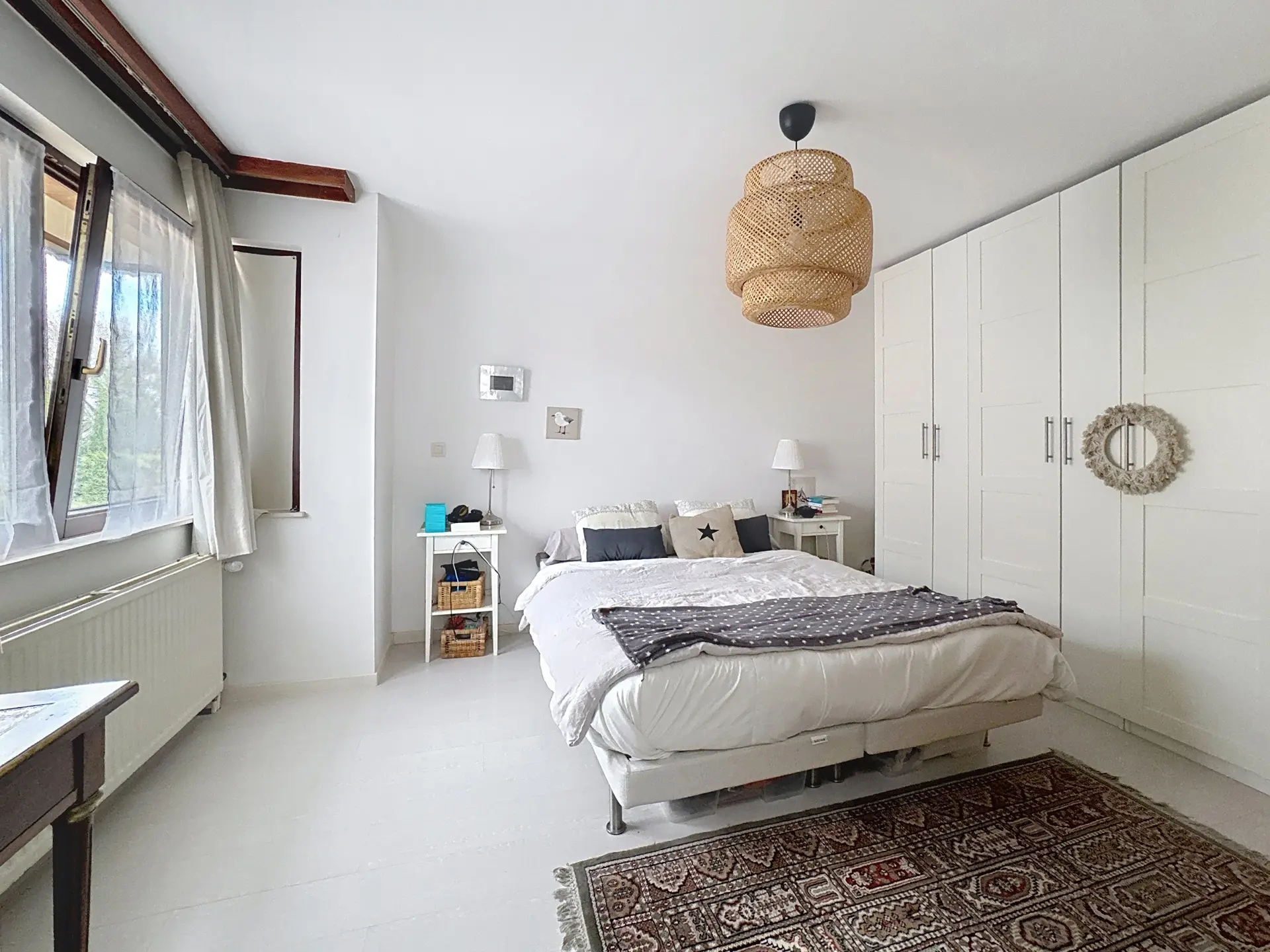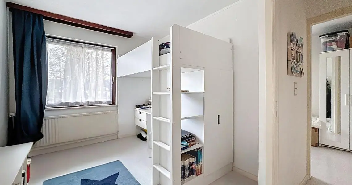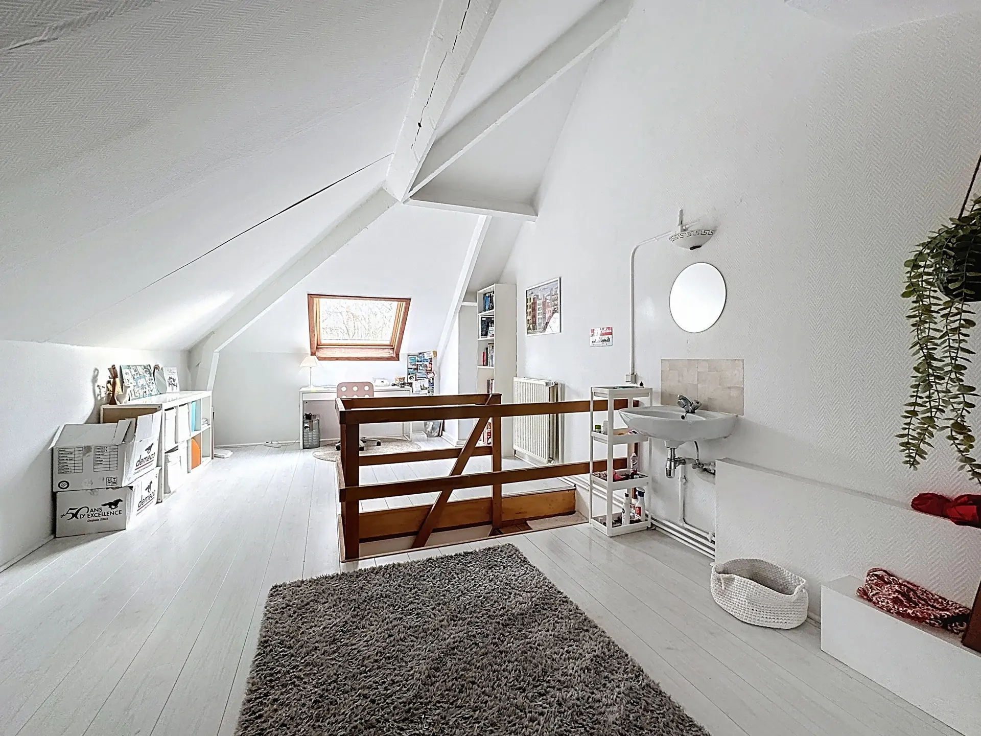 Elle se compose d’un hall d’entrée avec coin vestiaire, d’un spacieux séjour lumineux donnant accès au jardin, ainsi que d’une cuisine communicant avec la salle à manger et d’une toilette séparée au premier étage. Le deuxième étage offre trois chambres, une salle de bains, une salle de douche et une toilette séparée. Les combles aménagés accueillent une quatrième chambre, chaleureuse et unique, avec la possibilité d’y créer un coin douche supplémentaire.