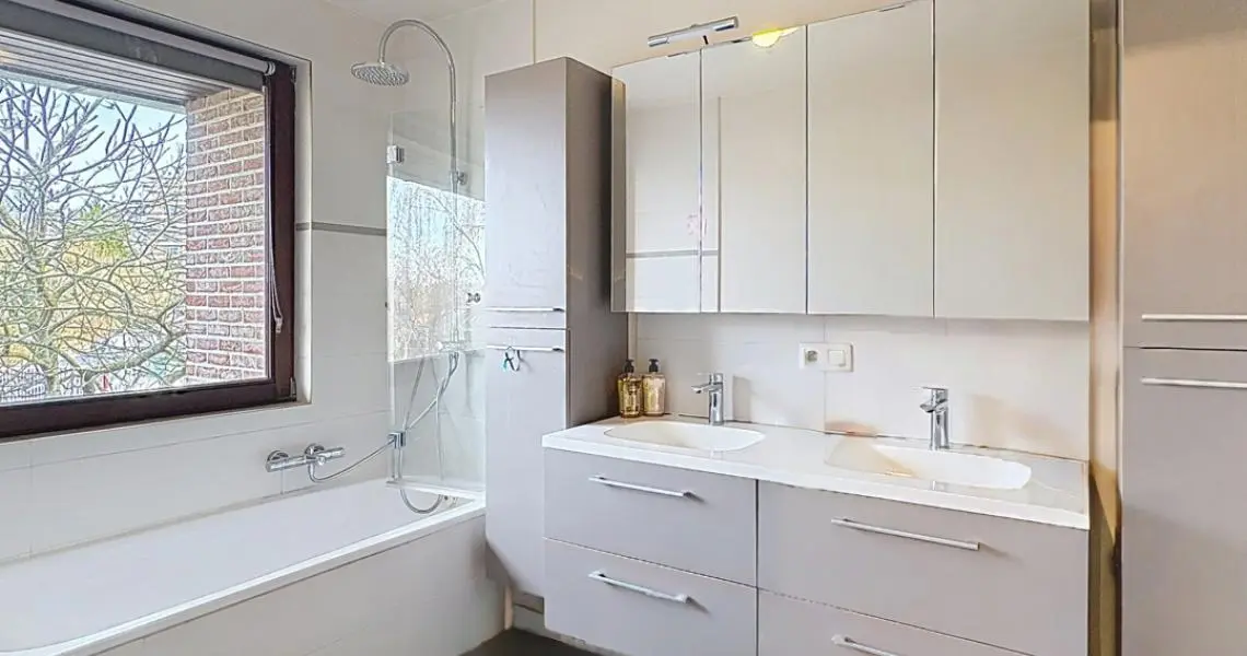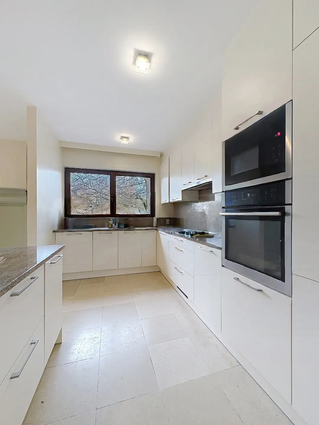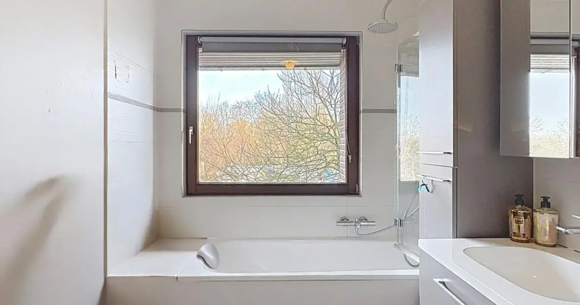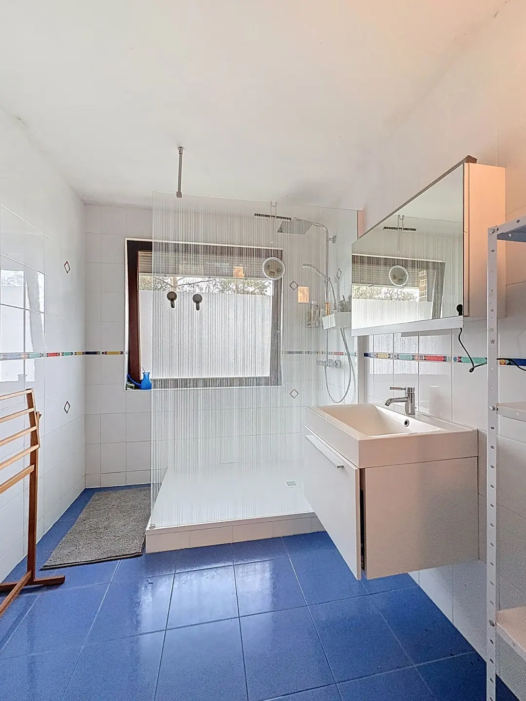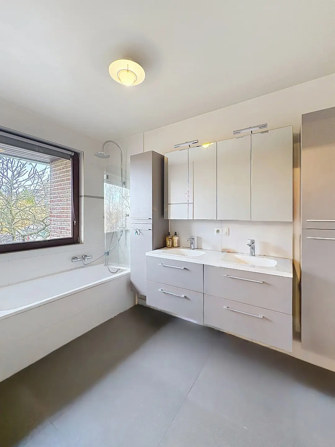Niveau +2 : Hall de nuit donnant accès à 2 belles chambres avec vue arborée (+/- 12 m² et 10,5 m²), d'une agréable salle de douche rénovée en 2022 de +/- 9 m² et d'une suite parental avec placards (Hulsta) de +/-15 m² avec salle de bains attenante de +/- 9 m² et un WC séparé accessible via la salle de bains parentale.