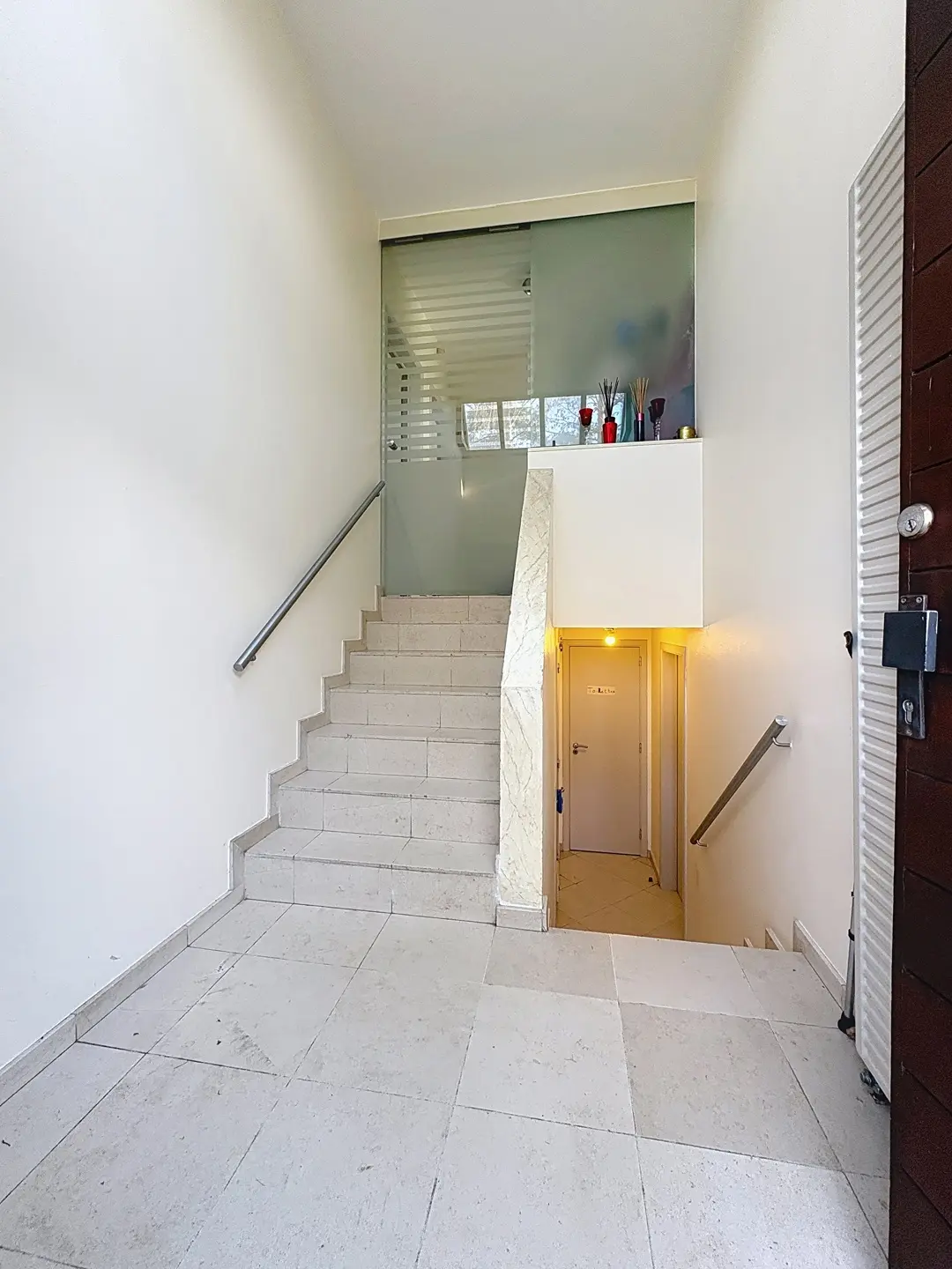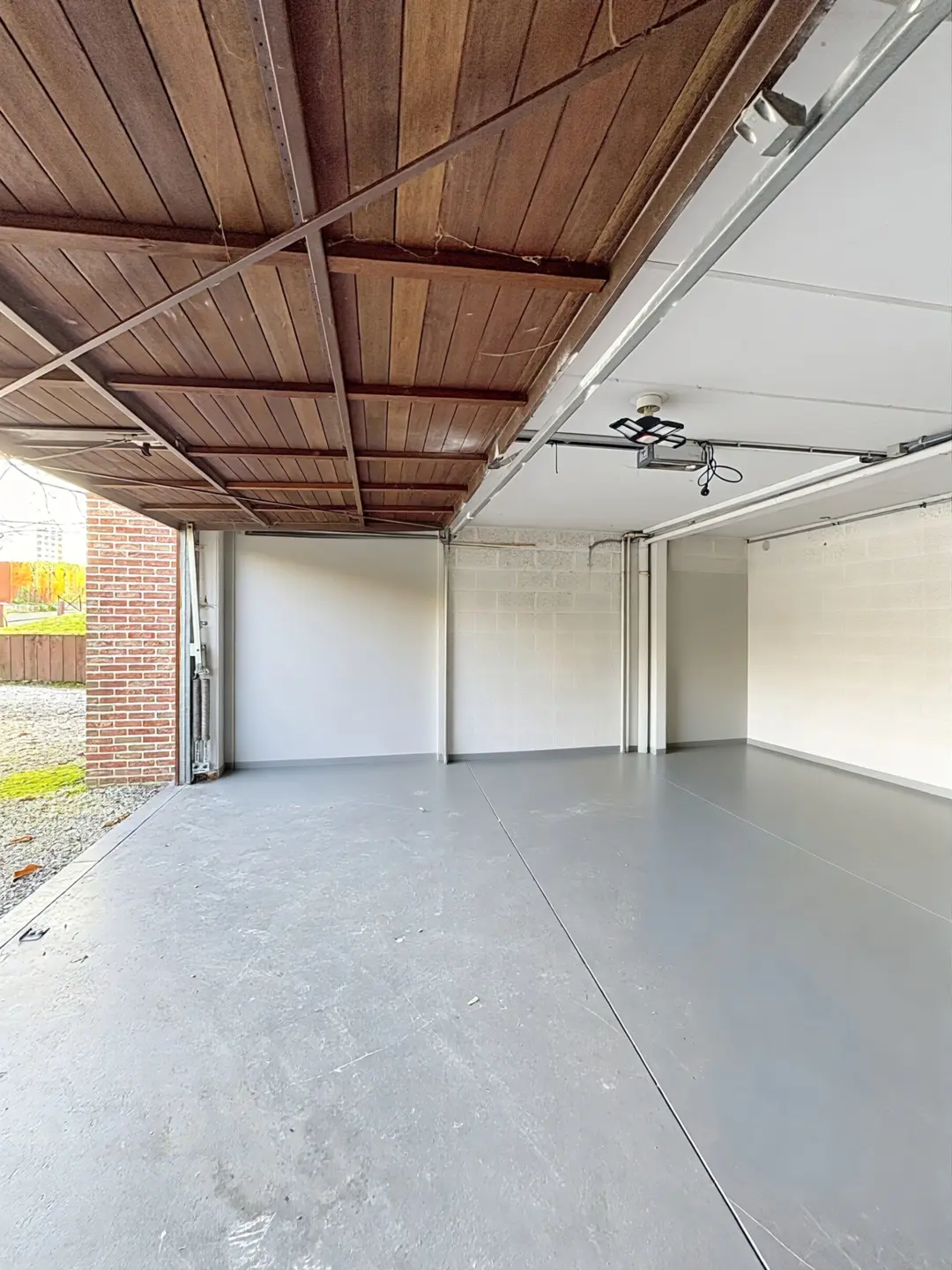 Au niveau -1 (Rez côté rue) : Un espace idéal pour une profession libérale de +/- 25 m² (entièrement équipée de prise de courant), d'un WC séparé et d'un double garage de +/- 34 m² + 2 emplacements de parking devant les garages.