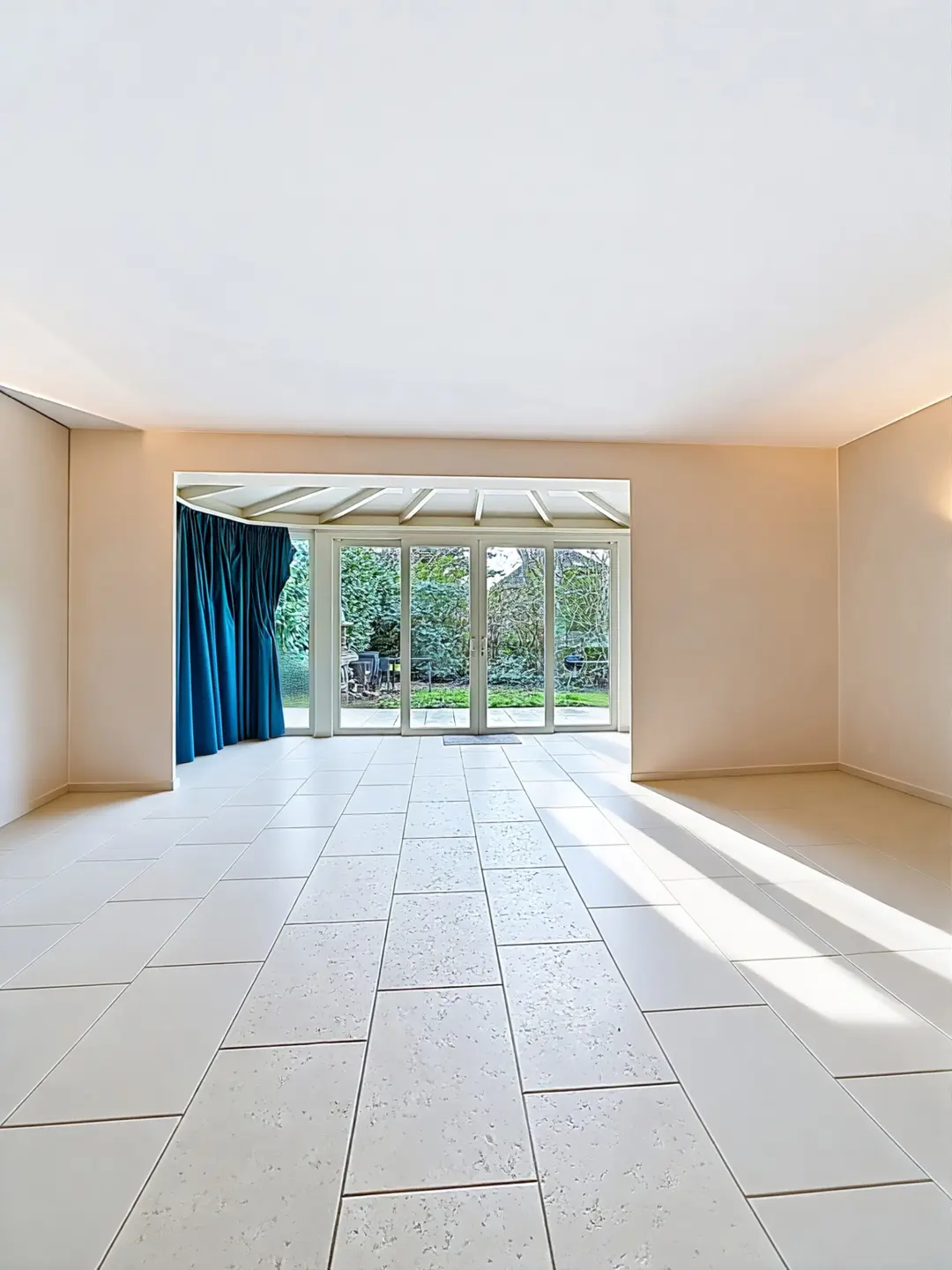 Au niveau +1 : Un spacieux et lumineux séjour avec Loggia de +/- 35 m² donnant accès au jardin, d'une belle cuisine super-équipée (2017- DSM Keuken) ouverte sur une agréable salle à manger de +/- 15 m², ainsi qu'un espace de stockage en sous-escalier attenant à la cuisine.
