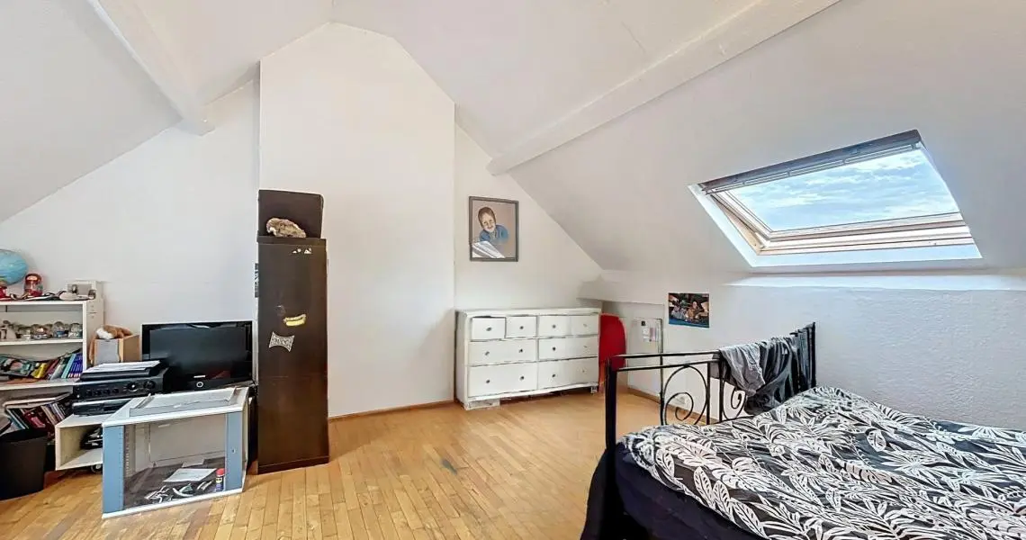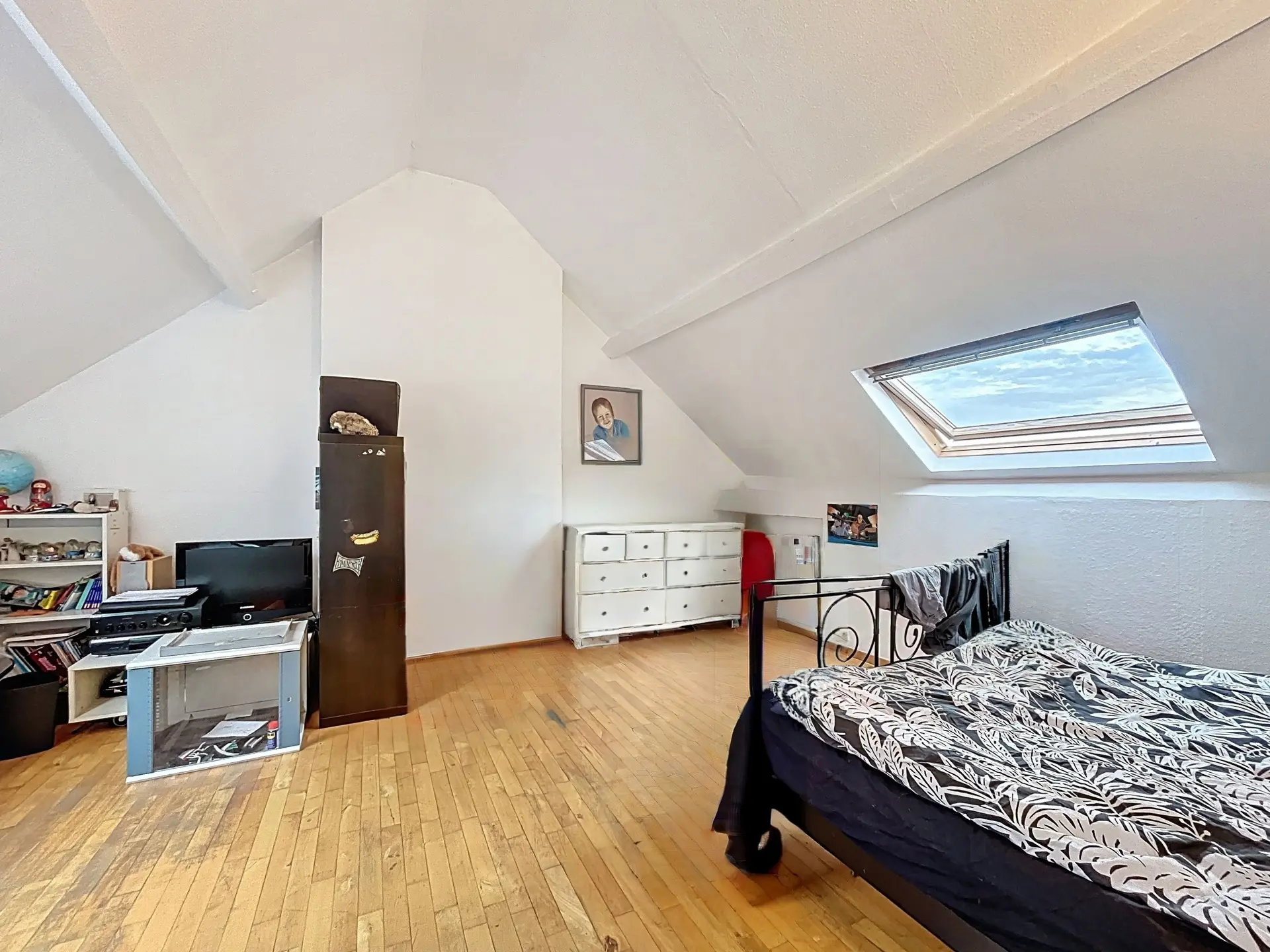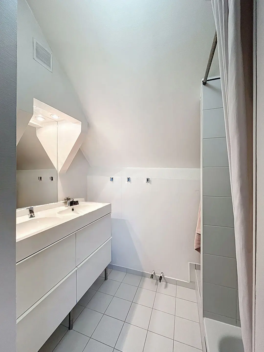 Le deuxième étage abrite une vaste chambre parentale de +/- 20 m² avec salle de douche (+/- 4 m²) et espaces de rangement.