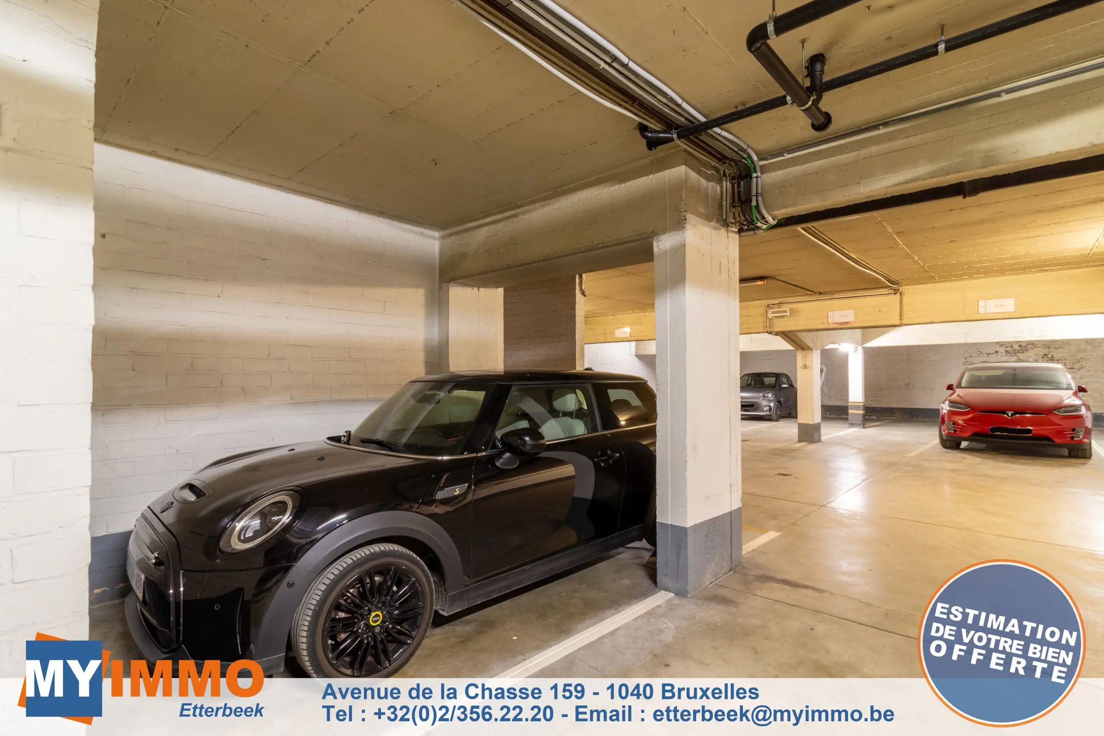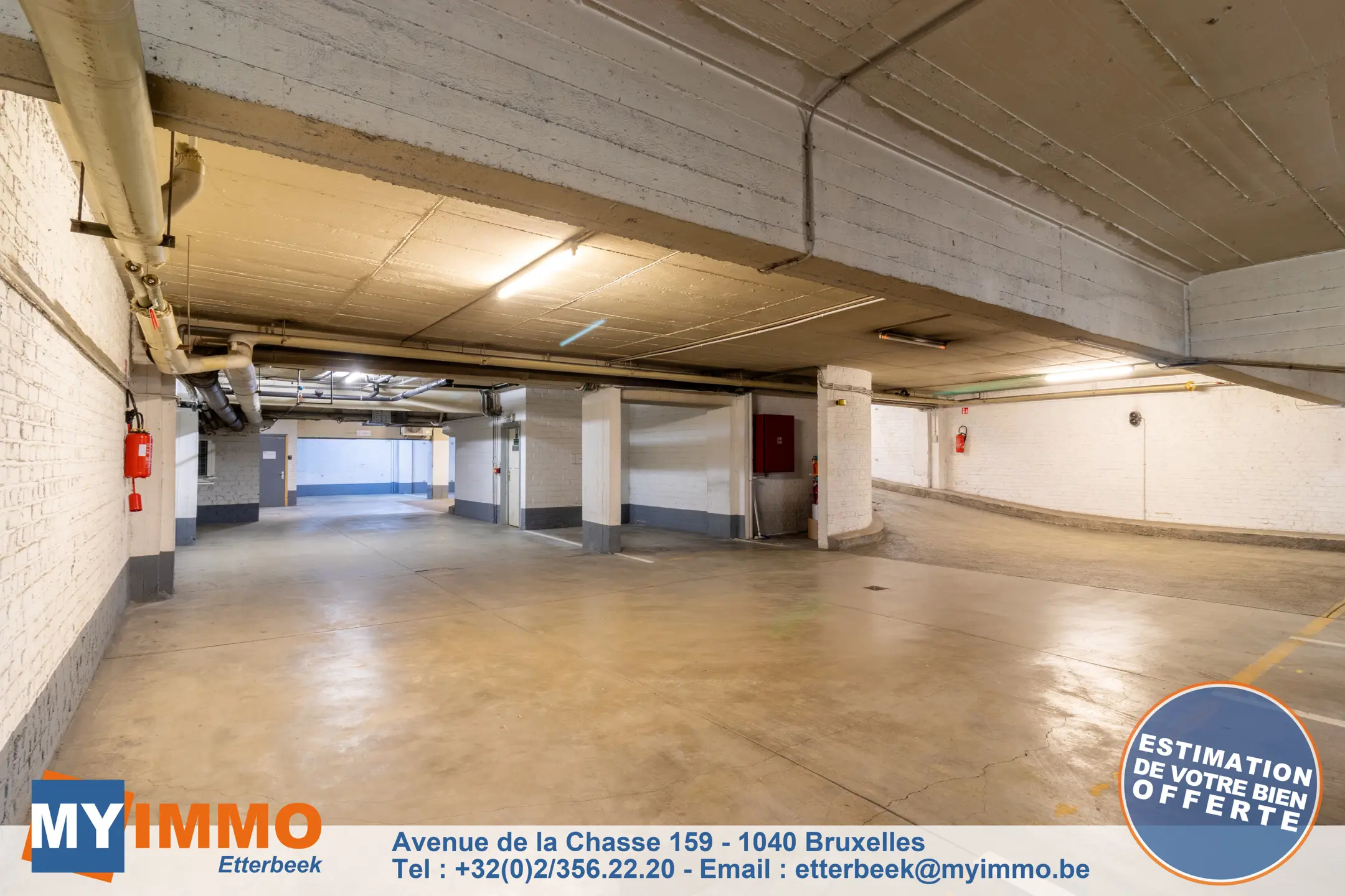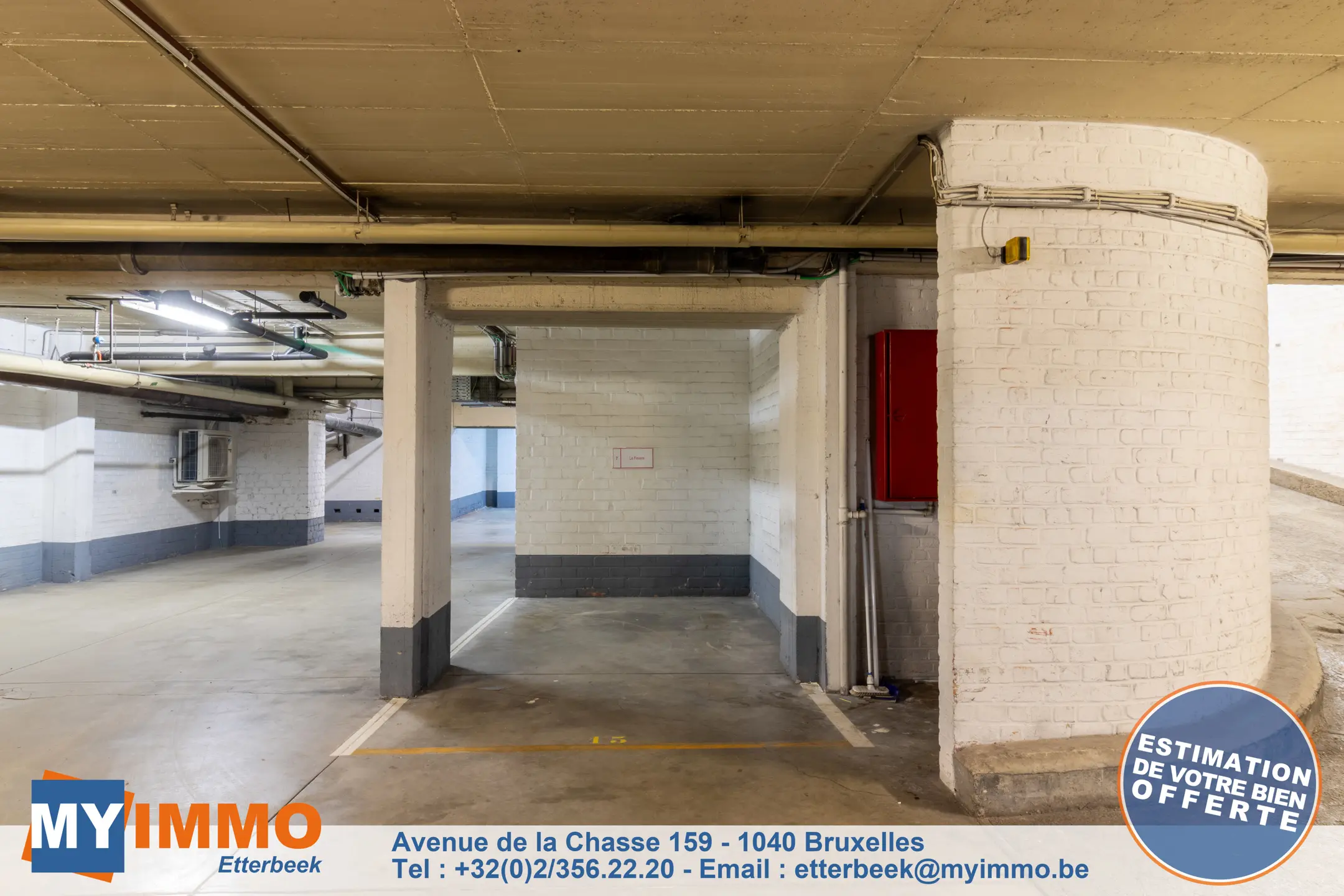 Quartier Européen/Cinquantenaire – MYIMMO Etterbeek vous propose en exclusivité une place de parking intérieur située au sous-sol d’un petit immeuble résidentiel. Spacieuse, facilement accessible et isolée des autres emplacements, elle offre un confort optimal pour stationner en toute sécurité. L’accès se fait via une porte automatique commandée à distance. Dimensions : Hauteur maximale : 1,95 m - Profondeur : 4,5 m - Largeur : 1,95 m