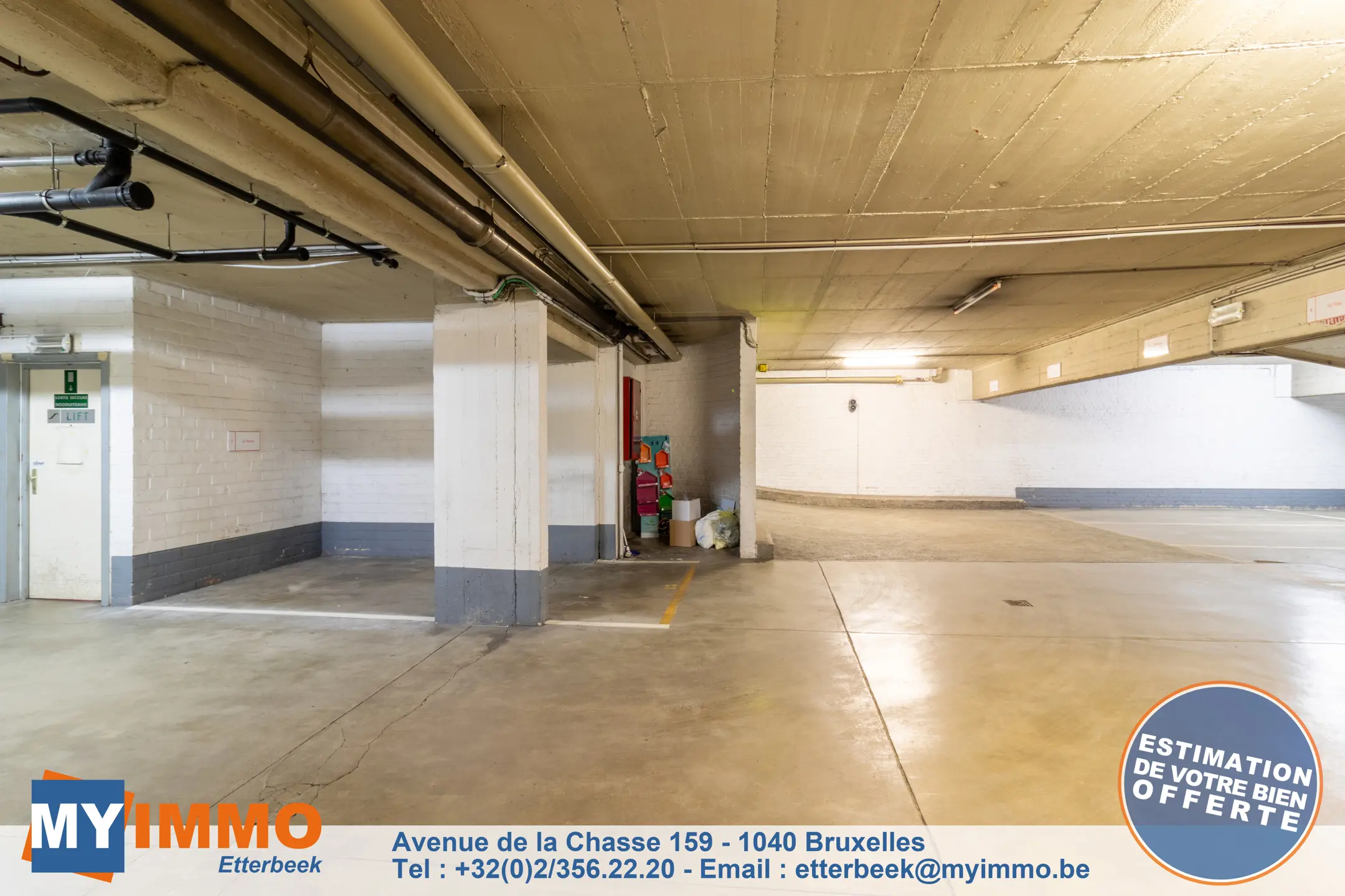 Quartier Européen/Cinquantenaire – MYIMMO Etterbeek vous propose en exclusivité une place de parking intérieur située au sous-sol d’un petit immeuble résidentiel. Spacieuse, facilement accessible et isolée des autres emplacements, elle offre un confort optimal pour stationner en toute sécurité. L’accès se fait via une porte automatique commandée à distance. Dimensions : Hauteur maximale : 1,95 m - Profondeur : 4,5 m - Largeur : 1,95 m