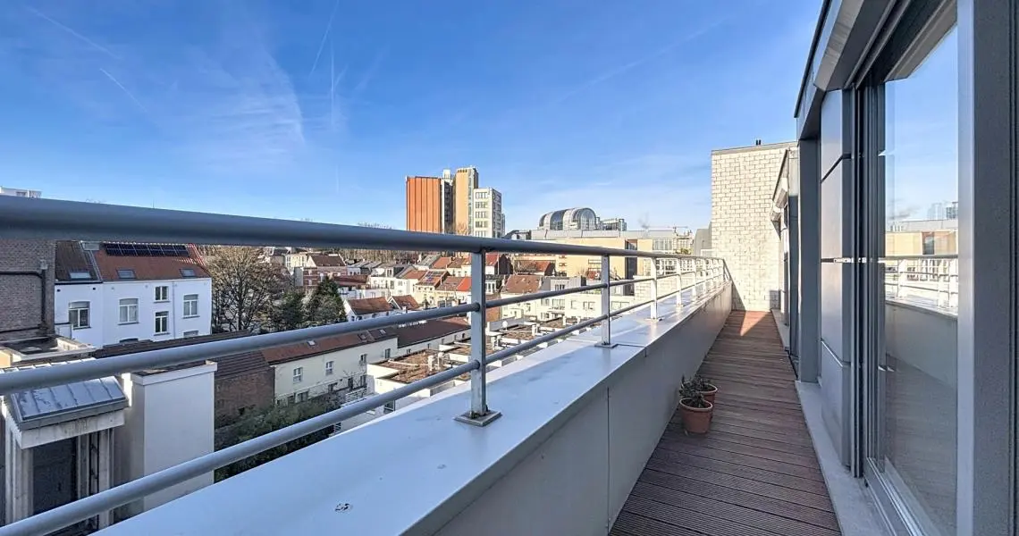MYIMMO Etterbeek a le plaisir de vous présenter ce magnifique penthouse lumineux de ± 120 m², agrémenté de ± 55 m² de terrasses, idéalement situé au cœur du quartier européen, à deux pas de la place Jourdan et des institutions européennes.