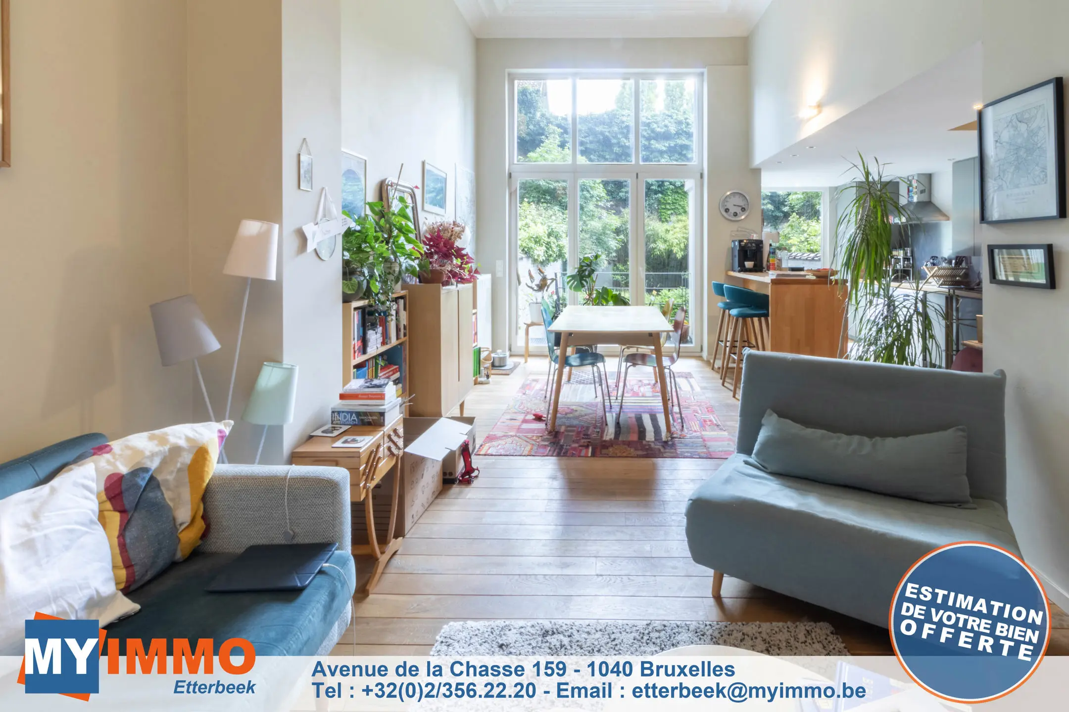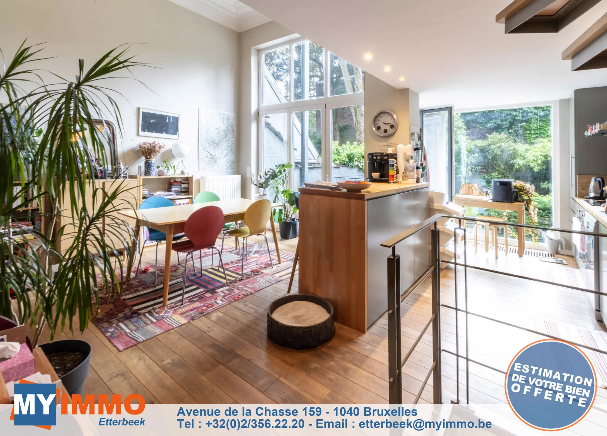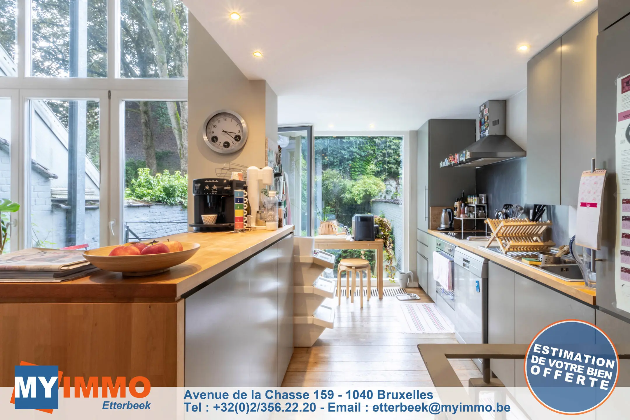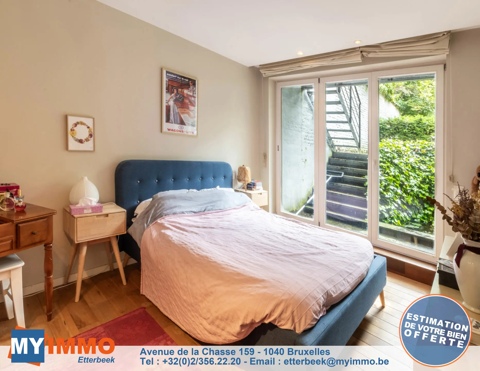Ixelles - Couronne - Coup de coeur assuré pour ce magnifique et très lumineux rez-de-jardin de +/- 100 m² comprenant une cuisine super équipée de +/- 11 m² ouverte sur un spacieux et lumineux séjour de +/- 25 m². Ce espace cuisine / séjour donne accès à un superbe espace extérieur idéalement orienté sud ouest et comprenant une grande terrasse ainsi qu'un beau et vaste jardin bien entretenu. Au niveau +1 se trouve un pratique espace bureau avec vue imprenable sur le jardin. Au niveau -1, vous profiterez d'un hall de nuit de +/- 6 m² avec dressing intégré, d'une grande salle de bains de +/- 9 m² avec douche, baignoire séparée et un coin buanderie intégré et caché et de 2 chambres (+/- 10 m² et +/- 14 m²) dont la plus grande avec placards intégrés. Ces 2 chambres ont une vue sur un magnifique bassin intégré et peuplé de carpes KOI et donnent accès à une terrasse qui rejoint le jardin. Surfaces vitrées immenses, luminosité garantie, calme absolu, terrasse, jardin, hauts plafonds, à visiter sans tarder ! Plus de biens sur www.myimmo.be