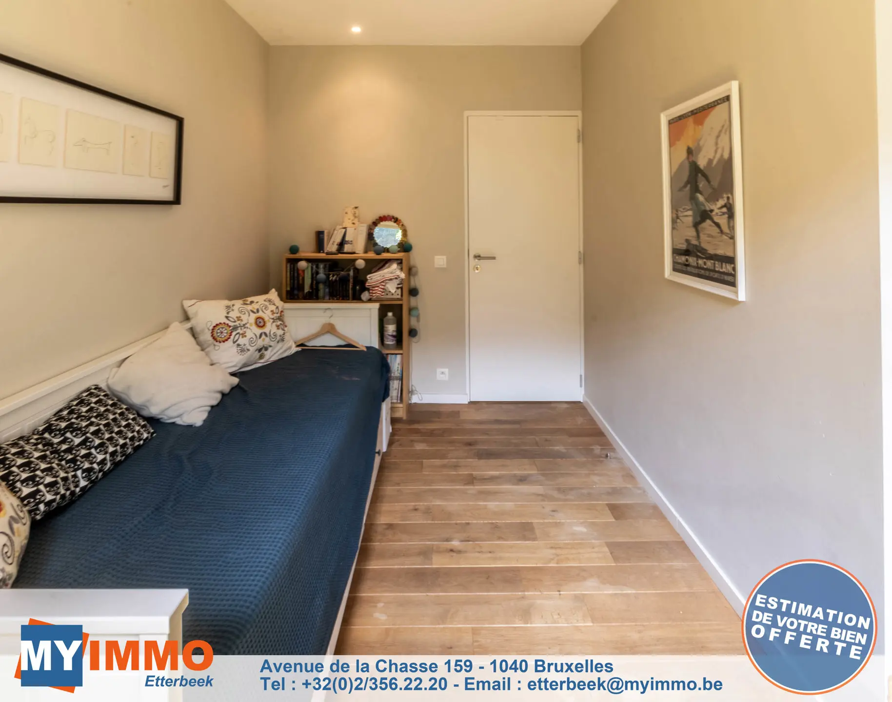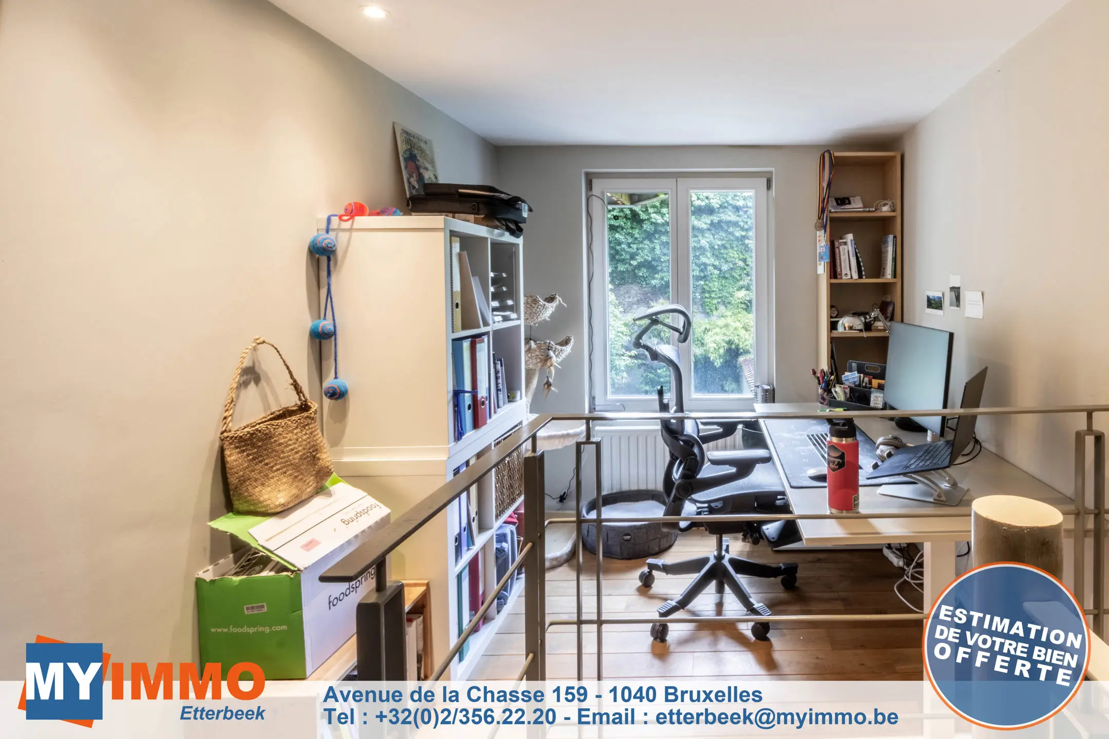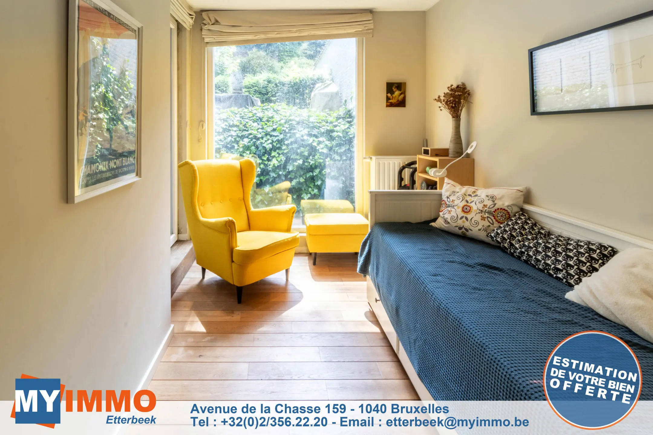 Ixelles - Couronne - Coup de coeur assuré pour ce magnifique et très lumineux rez-de-jardin de +/- 100 m² comprenant une cuisine super équipée de +/- 11 m² ouverte sur un spacieux et lumineux séjour de +/- 25 m². Ce espace cuisine / séjour donne accès à un superbe espace extérieur idéalement orienté sud ouest et comprenant une grande terrasse ainsi qu'un beau et vaste jardin bien entretenu. Au niveau +1 se trouve un pratique espace bureau avec vue imprenable sur le jardin. Au niveau -1, vous profiterez d'un hall de nuit de +/- 6 m² avec dressing intégré, d'une grande salle de bains de +/- 9 m² avec douche, baignoire séparée et un coin buanderie intégré et caché et de 2 chambres (+/- 10 m² et +/- 14 m²) dont la plus grande avec placards intégrés. Ces 2 chambres ont une vue sur un magnifique bassin intégré et peuplé de carpes KOI et donnent accès à une terrasse qui rejoint le jardin. Surfaces vitrées immenses, luminosité garantie, calme absolu, terrasse, jardin, hauts plafonds, à visiter sans tarder ! Plus de biens sur www.myimmo.be