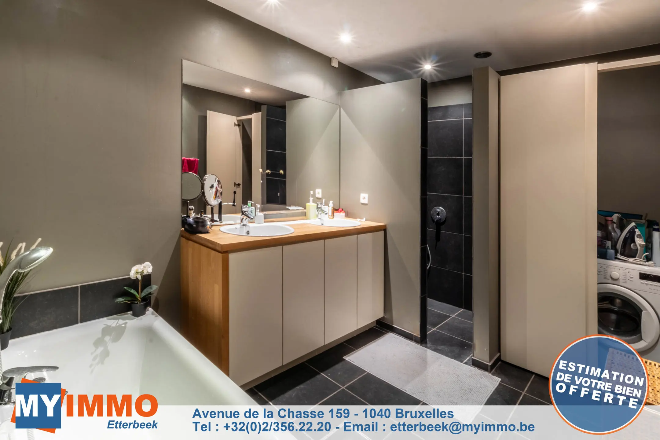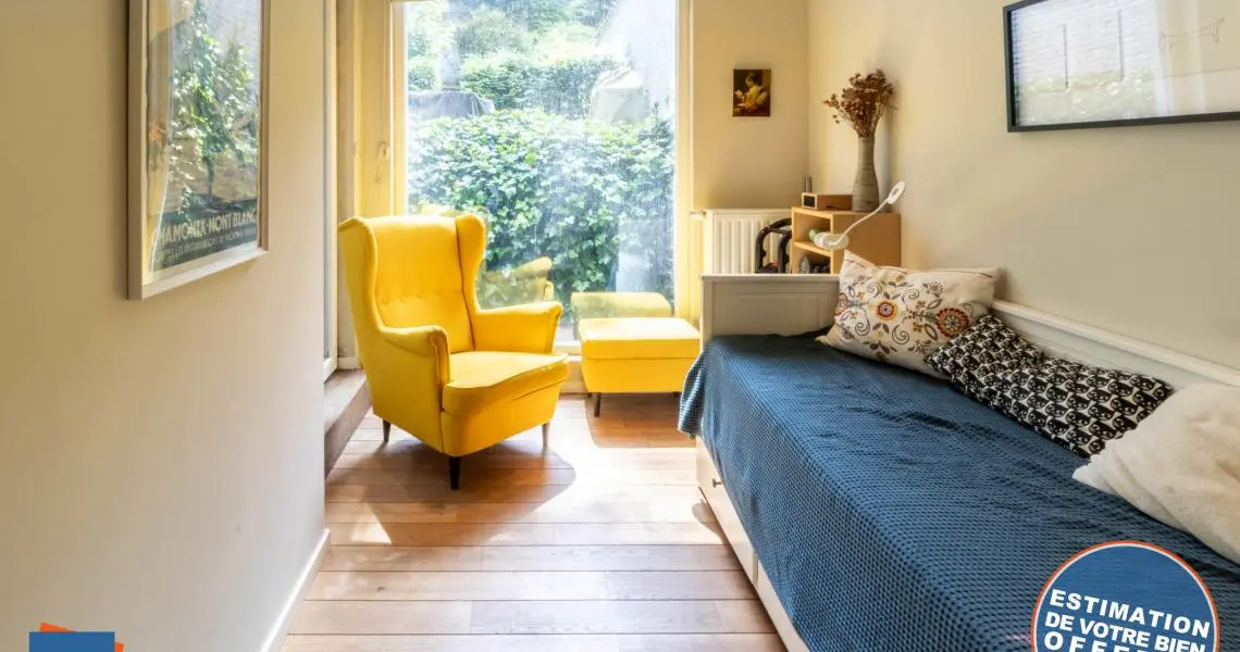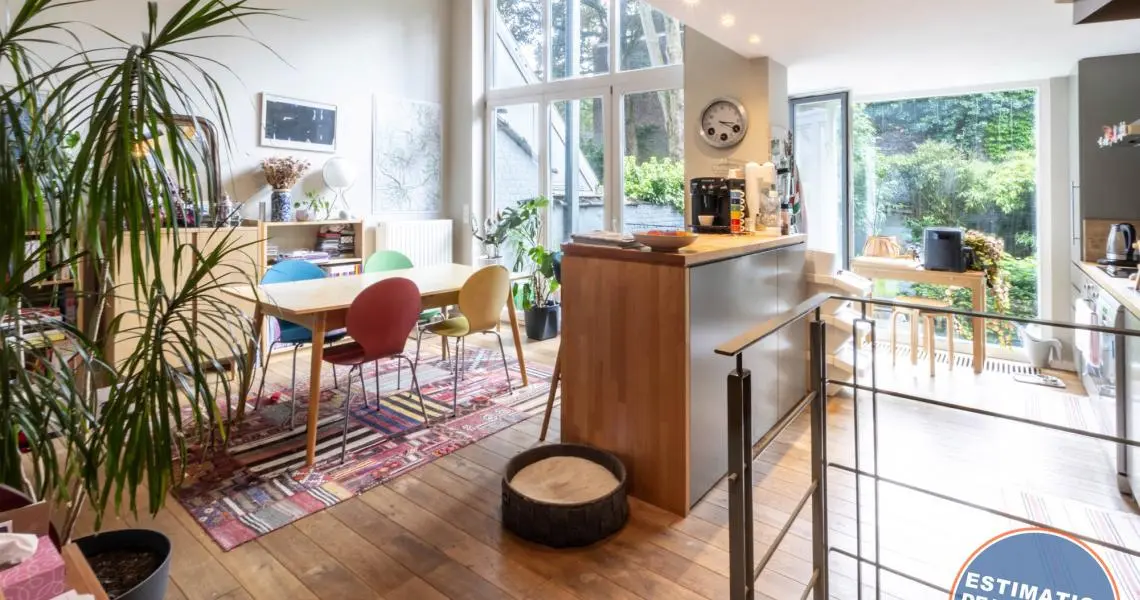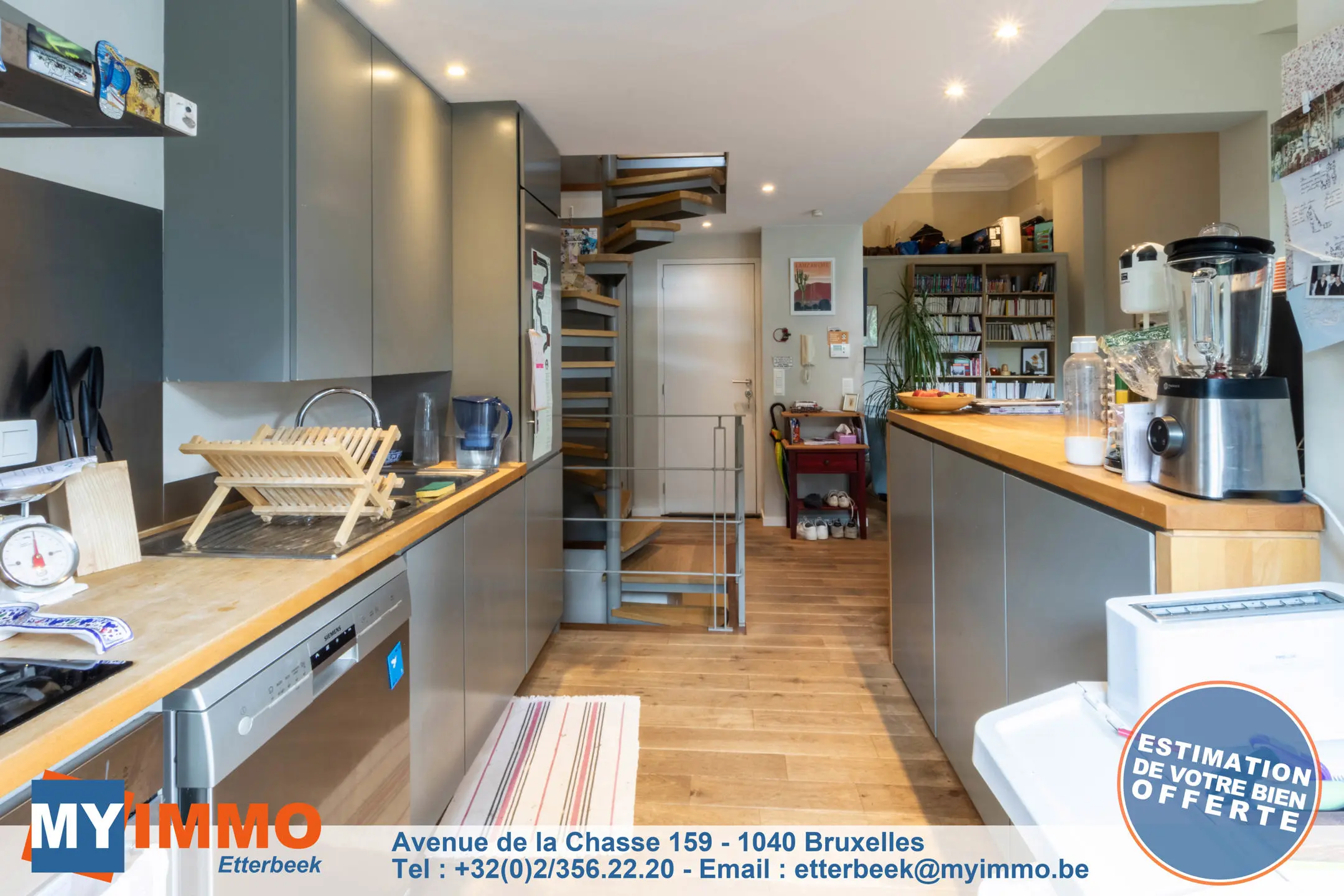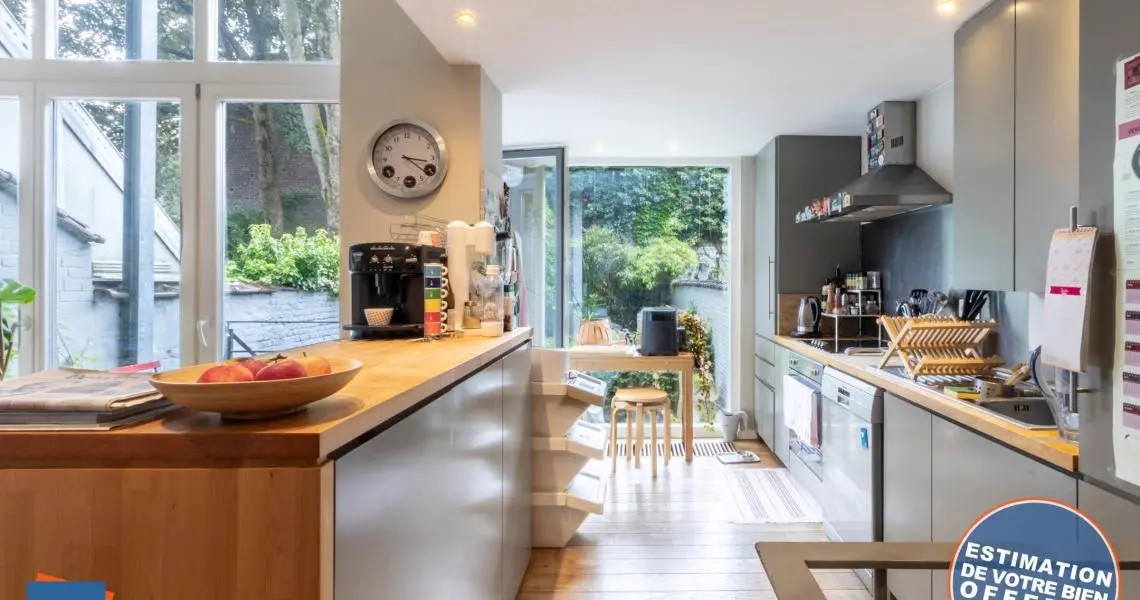 Ixelles - Couronne - Coup de coeur assuré pour ce magnifique et très lumineux rez-de-jardin de +/- 100 m² comprenant une cuisine super équipée de +/- 11 m² ouverte sur un spacieux et lumineux séjour de +/- 25 m². Ce espace cuisine / séjour donne accès à un superbe espace extérieur idéalement orienté sud ouest et comprenant une grande terrasse ainsi qu'un beau et vaste jardin bien entretenu. Au niveau +1 se trouve un pratique espace bureau avec vue imprenable sur le jardin. Au niveau -1, vous profiterez d'un hall de nuit de +/- 6 m² avec dressing intégré, d'une grande salle de bains de +/- 9 m² avec douche, baignoire séparée et un coin buanderie intégré et caché et de 2 chambres (+/- 10 m² et +/- 14 m²) dont la plus grande avec placards intégrés. Ces 2 chambres ont une vue sur un magnifique bassin intégré et peuplé de carpes KOI et donnent accès à une terrasse qui rejoint le jardin. Surfaces vitrées immenses, luminosité garantie, calme absolu, terrasse, jardin, hauts plafonds, à visiter sans tarder ! Plus de biens sur www.myimmo.be
