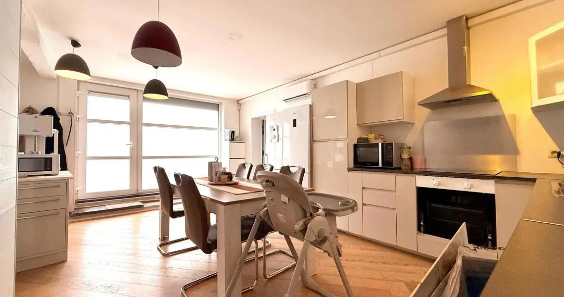 À vendre : spacieux appartement sous-plex d'une superficie totale de 140 m² avec 1 chambre + possibilité d’une 2e, situé dans un quartier vivant et en pleine évolution.