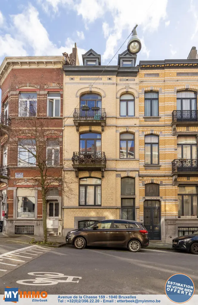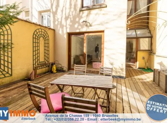 Limite Etterbeek / Schaerbeek - A 5 minutes à pied du métro Mérode et du Parc du Cinquantenaire - MYIMMO Etterbeek vous propose ce très joli appartement de +/- 75 m² comprenant une cuisine de +/- 17 m² avec un coin repas très pratique, un salon de +/- 30 m² (avec coin bureau) donnant accès à une magnifique terrasse de +/- 40 m² idéalement orientée sud-est. L'appartement comprend également une jolie salle de douche avec branchements et évacuations pour machine à laver et séchoir ainsi qu'une toilette séparée. La chambre très calme de +/- 18 m² bénéficie de grands dressings intégrés dans le mur. Emplacement idéal, appartement très cosy et jouissant d'un agréable espace extérieur, à visiter sans tarder ! Plus de biens sur www.myimmo.be