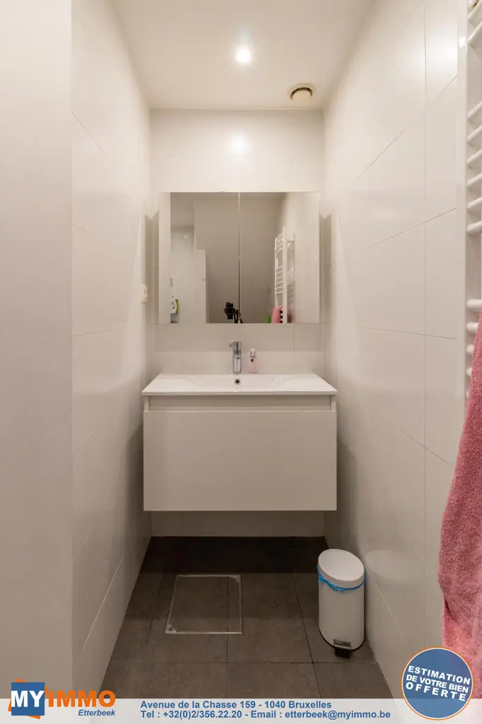 Limite Etterbeek / Schaerbeek - A 5 minutes à pied du métro Mérode et du Parc du Cinquantenaire - MYIMMO Etterbeek vous propose ce très joli appartement de +/- 75 m² comprenant une cuisine de +/- 17 m² avec un coin repas très pratique, un salon de +/- 30 m² (avec coin bureau) donnant accès à une magnifique terrasse de +/- 40 m² idéalement orientée sud-est. L'appartement comprend également une jolie salle de douche avec branchements et évacuations pour machine à laver et séchoir ainsi qu'une toilette séparée. La chambre très calme de +/- 18 m² bénéficie de grands dressings intégrés dans le mur. Emplacement idéal, appartement très cosy et jouissant d'un agréable espace extérieur, à visiter sans tarder ! Plus de biens sur www.myimmo.be