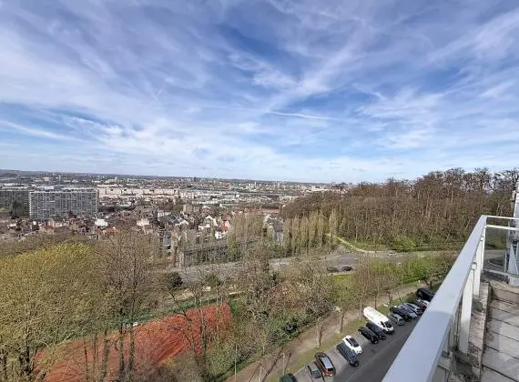 MYIMMO vous propose ce superbe appartement traversant de deux chambres et muni d'une grande terrasse offrant une vue panoramique exceptionnelle, à proximité immédiate du Parc Duden et face au club de tennis Forest Domaine.