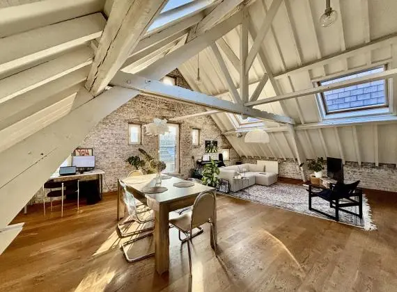 Quartier Dansaert – MYIMMO a le plaisir de vous présenter ce superbe loft en duplex de ± 143 m², situé aux derniers étages d’un ancien bâtiment industriel de caractère. Idéalement situé dans une rue calme à...